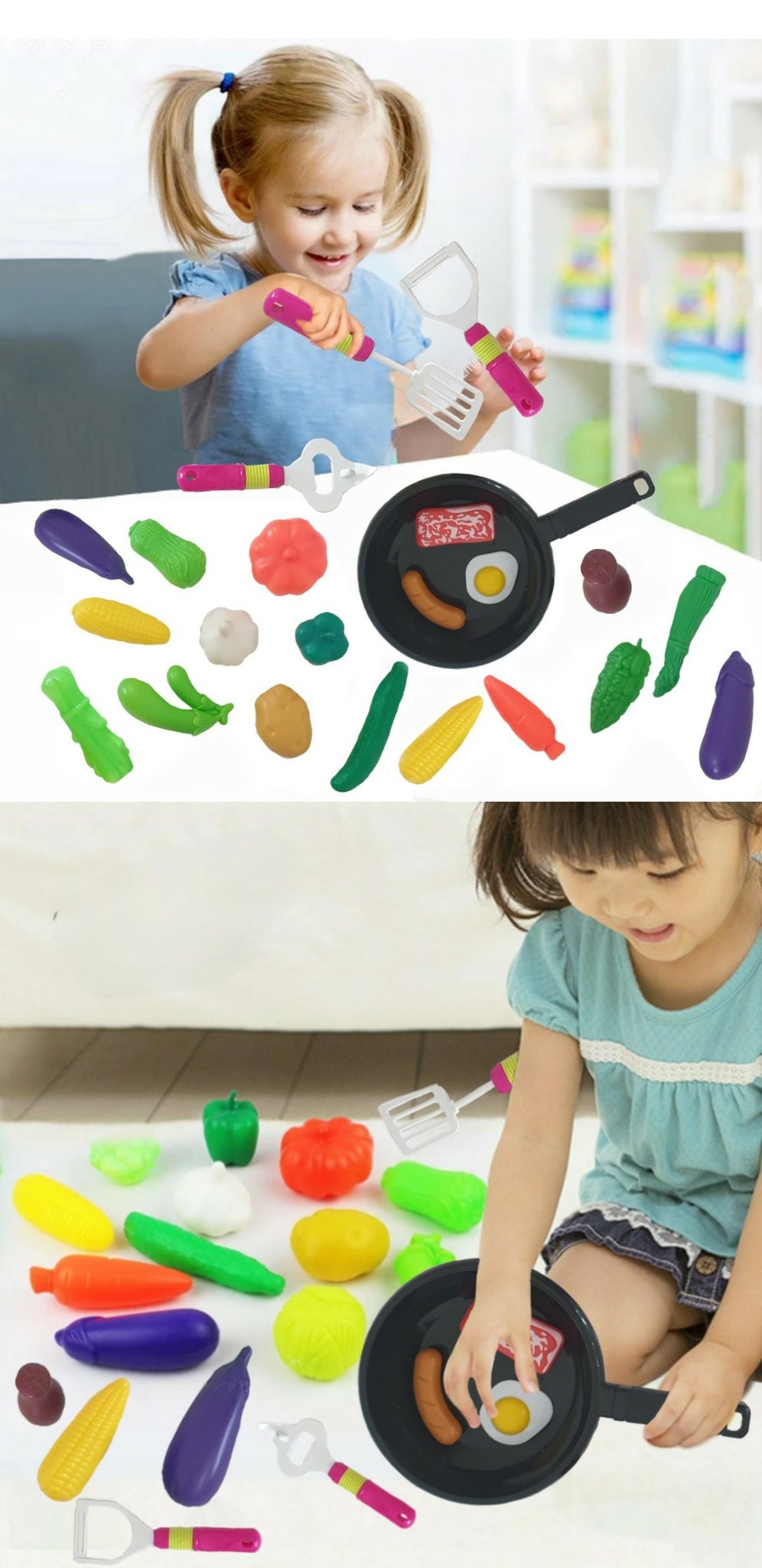 This realistic 23 piece little pretend play food frying pan set, with kitchen accessories is the perfect little role play set for your little budding foodie. Realistic design and brightly coloured with environmentally safe material, simulate real-life cooking comprehensively developing your little one's imagination and creativity.